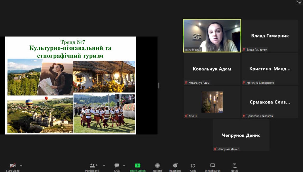 27 лютого 2024 року на платформі Zoom, в межах дії Меморандуму про співпрацю між закладами освіти, відбулась лекція-презентація «Тренди індустрії гостинності та туризму: чим живе Вінниця та Україна» для учнів 11-В класу комунального закладу «Вінницький ліцей №4», які вивчають курс за вибором «Соціальне шкільне підприємство».
