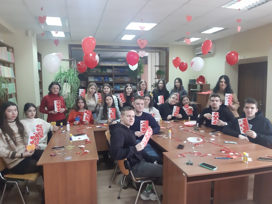 12 лютого 2024 року, напередодні Дня святого Валентина, співробітники бібліотеки ВТЕІ ДТЕУ Олена Літвінова та Юлія Лащенко провели майстер-клас з виготовлення валентинок для студентів ФТМСО груп ТР-11д, ПТ-11д. Учасники заходу творчо підійшли до створення вітальних листівок. Кожна робота набула своєї неповторності, здобувачі вищої освіти намагалися втілити власні фантазії, зробити виріб особливим. Виготовлення оригінальних валентинок дозволило проявити креативність, сприяло святковому настрою. Майстер-клас пройшов у дружній та теплій атмосфері.