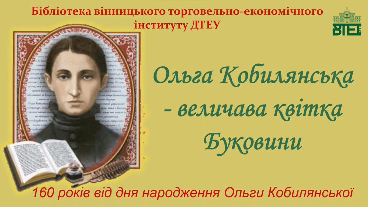 Ольга Кобилянська: відома і незнайома. За горде серце її називали гірською орлицею, за яскраву метафоричність творів - пишною трояндою в саду української літератури. Сама ж письменниця вважала себе «робітницею свого народу», бо понад 55 років свого життя присвятила літературі.