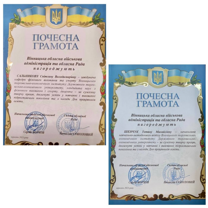 Працівники Вінницького торговельно-економічного інституту ДТЕУ Альона Танасійчук, доктор економічних наук, професор кафедри маркетингу та реклами та Віра Штифурак, доктор педагогічних наук, професор кафедри права, отримали нагороди "Кращий Співробітник 2023 року" у конкурсі "Імена, Яким Довіряють". Ця важлива подія підкреслює високий професіоналізм та відданість співробітників інституту. Працюємо заради миру! Бажаємо подальших звершень!