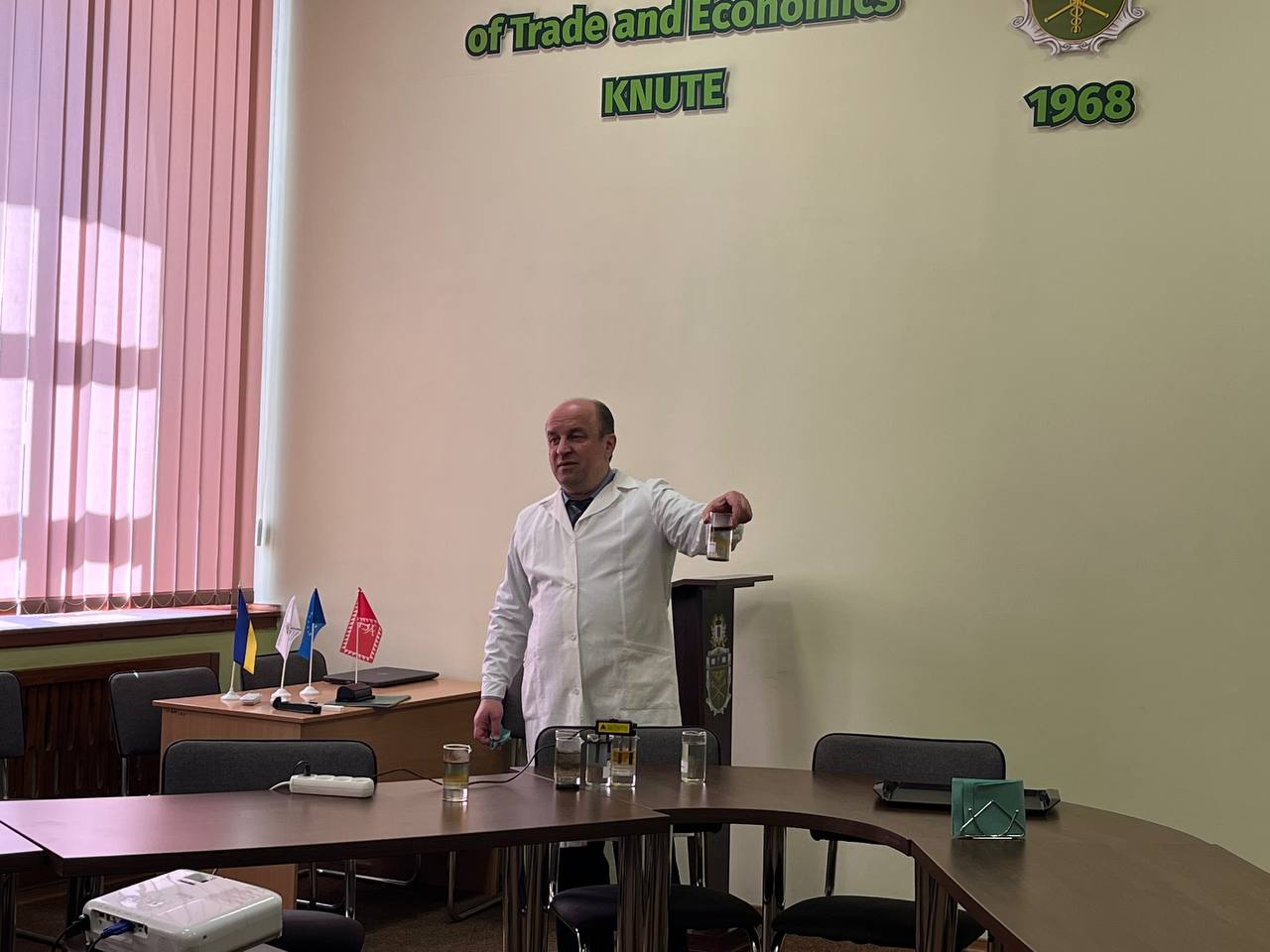 10 травня 2023 року школярі 8-А класу КЗ «Вінницький ліцей №10» завітали до ВТЕІ ДТЕУ на захід в межах дії Меморандуму про співпрацю. Для учнів декан факультету торгівлі, маркетингу та сфери обслуговування Сергій Гирич провів практичне заняття «Якість та безпечність питної води». Мета заходу - наочно продемонструвати якість різних зразків води. Проведене практичне заняття формує в учнів відповідальне ставлення до води, як до важливої складової харчування людини.
