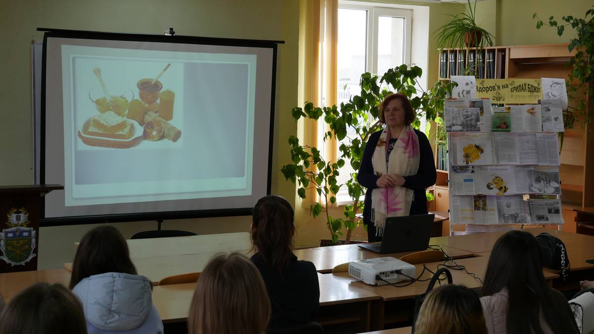 Студенти мали можливість дізнатися багато корисної та цікавої інформації про те, яку користь приносять бджоли. Серед комах, що мешкають на планеті, бджола – найкорисніша для людини. Бджоли виробляють такі речовини, як мед, маточне молочко, бджолину отруту, прополіс, пергу, віск. Продукти бджільництва натуральні, цілющі і використовуються в лікуванні хвороб, кулінарії, косметиці та в якості біодобавки.