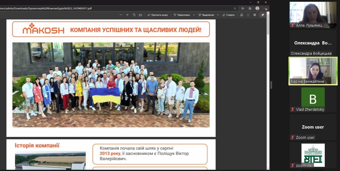 8 грудня 2022 року на базі Центру розвитку кар'єри ВТЕІ ДТЕУ для студентів була проведена онлайн-зустріч із директором з управління персоналом компанії MAKOSH - Венікайтене Каріною.