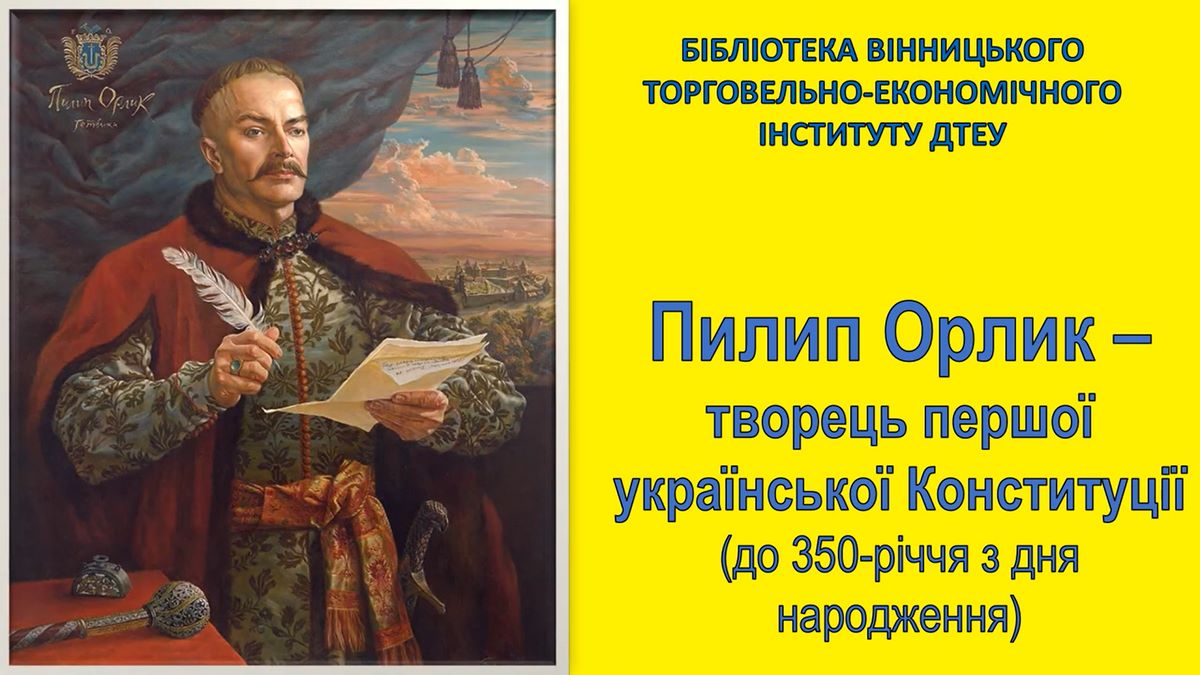 Співробітники бібліотеки ВТЕІ ДТЕУ підготували відео-екскурс «Пилип Орлик - творець першої української Конституції».