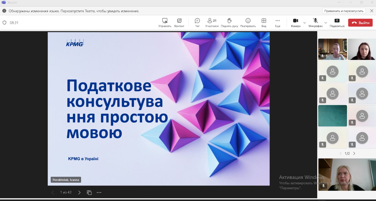 30 квітня 2025 року здобувачі вищої освіти спеціальності «Облік і оподаткування» долучилися до професійного вебінару на тему «Робота податкового консультанта», організованого за участі провідної міжнародної компанії KPMG.