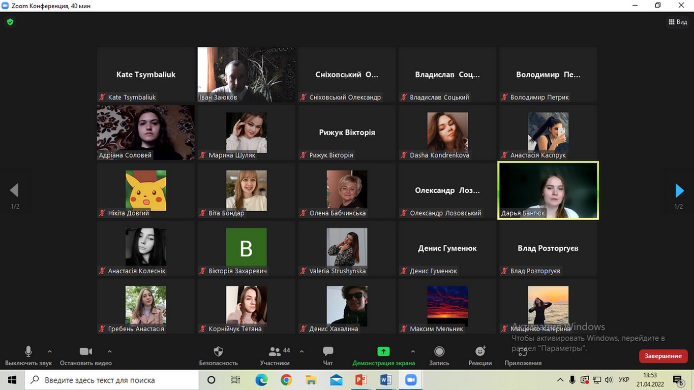 21 квітня 2022 року дистанційно на платформі Zoom було проведено засідання секції 8 «Сучасне товарознавство: інновації, проблеми якості та безпеки» в рамках XІ Всеукраїнської студентської науково-практичної конференції «Актуальні проблеми ефективного соціально-економічного розвитку України: пошук молодих».