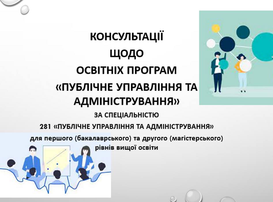 Впродовж 7-11 лютого відбулися засідання робочих груп та проведені консультації зі стейкголдерами в оффлайн- та онлайн-форматах з розроблення освітніх програм (ОП) «Публічне управління та адміністрування» за спеціальністю 281 «Публічне управління та адміністрування» для першого (бакалаврського) та другого (магістерського) рівнів вищої освіти.