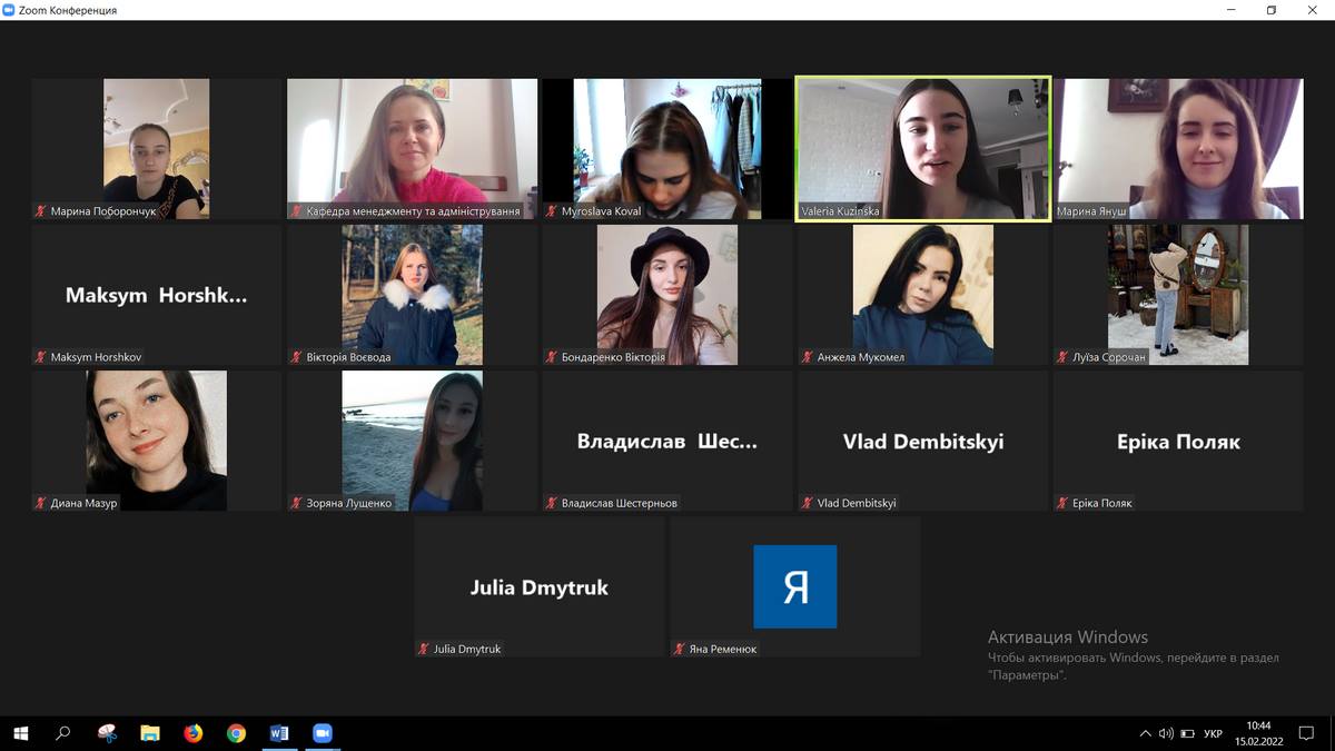 15 лютого 2022 року кафедрою менеджменту та адміністрування було організовано майстер-клас «Лайфхаки помічника народного депутата»: очікування та реальність», який провела Марина Януш, випускниця освітньої програми «Публічне управління та адміністрування», помічник-консультант народного депутата України. Захід пройшов у надзвичайно теплій та невимушеній атмосфері, Марина поділилась зі здобувачами вищої освіти секретами власного успіху та наголосила на аспектах, на які варто звертати увагу уже зараз, щоб стати конкурентоспроможним фахівцем!