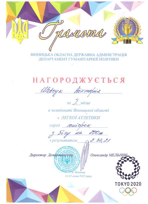 За результатами змагань Вікторія Шевчук виборола І місце серед юніорок на дистанції з бігу 800 м та ІІІ місце – на дистанції 1500 м.