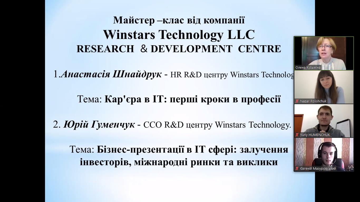 18 листопада 2021 року у Вінницькому торговельно-економічному інституті КНТЕУ в рамках Тижня факультету економіки, менеджменту та права відбувся майстер-клас від представників Research & Development Centre Winstars Technology LLC. Організатор заходу – кафедра економічної кібернетики та інформаційних систем.