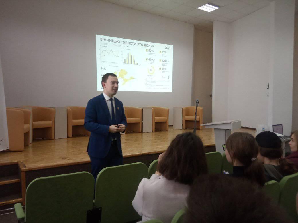 11 листопада 2021 року відбулася зустріч здобувачів вищої освіти освітніх програм «Туризм», «Менеджмент зовнішньоекономічної діяльності», «Маркетинг» з Олександром Вешелені, директором департаменту маркетингу міста та туризму Вінницької міської ради.