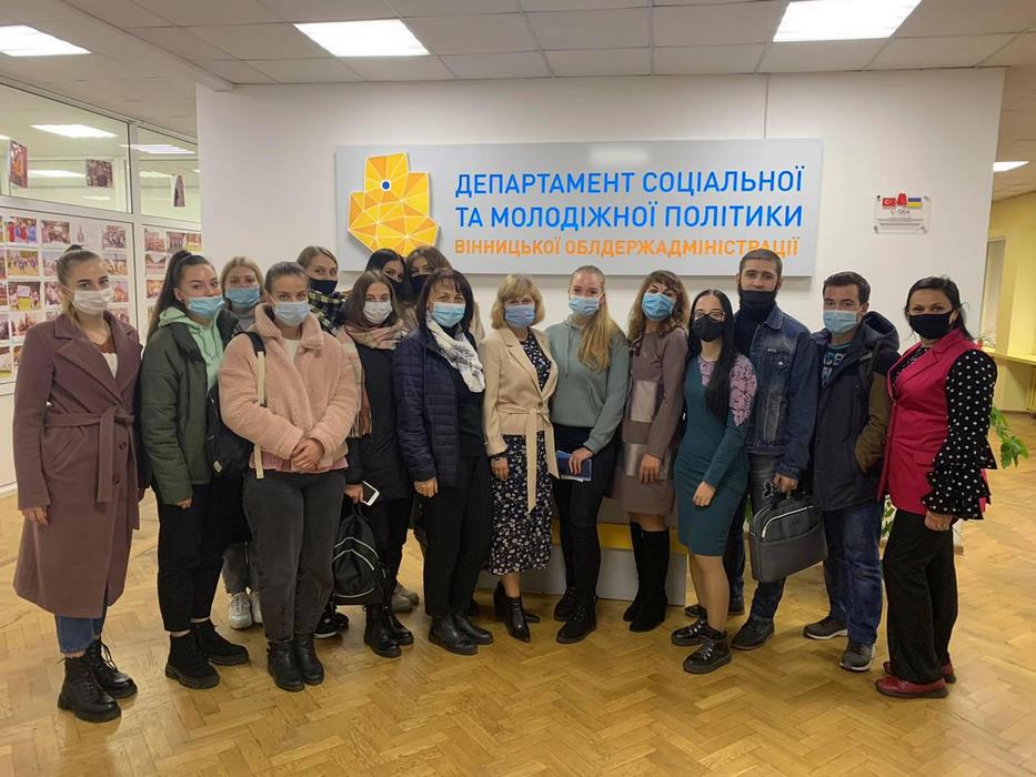 29 жовтня 2021 року здобувачі вищої освіти освітньої програми «Соціальне забезпечення» освітнього ступеня «Бакалавр» разом з гарантом освітньої програми брали участь у виїзному засіданні Бізнес-школи ВТЕІ КНТЕУ, що проходило на базі Департаменту соціальної та молодіжної політики Вінницької ОДА, в управлінні сімейної політики та оздоровлення.