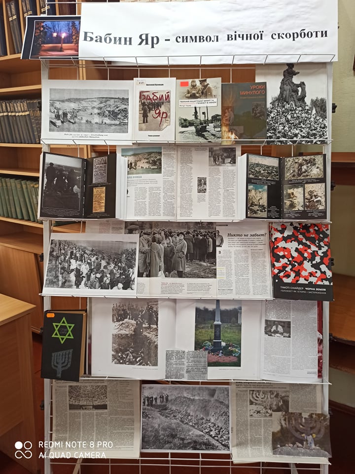 До цієї трагічної події в читальній залі №3 бібліотеки інституту представлено тематичну книжкову виставку «Бабин Яр – символ вічної скорботи».