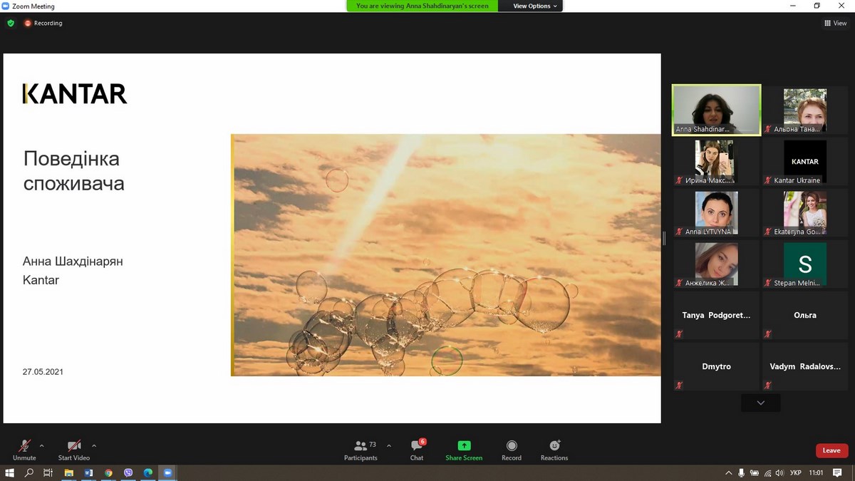 27 травня 2021 року викладачі та здобувачі вищої освіти ВТЕІ КНТЕУ брали участь у вебінарі «Споживацькі настрої українців 2021», який проводила Анна Шахдінарян, Account Director Kantar Ukraine за організації провідної у світі дослідницької компанії – «Kantar Україна».