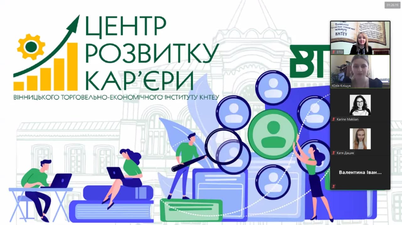 З 24 по 28 травня 2021 року у Вінницькому торговельно-економічному інституті КНТЕУ проходив «Тиждень кар’єри» онлайн. Наші студенти мали можливість ознайомитись із вакансіями провідних підприємств і установ України та світу.