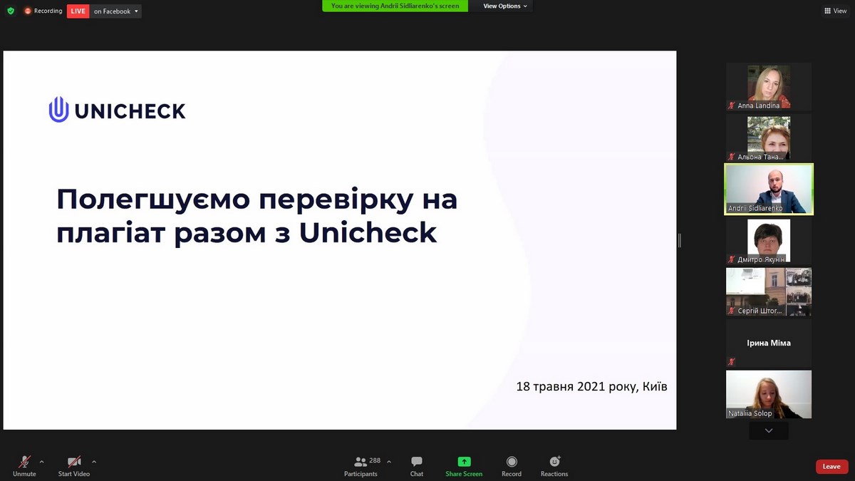 Спікерами заходу стали експерти з академічної доброчесності: комерційний директор Unicheck Україна Андрій Сідляренко та провідний менеджер по роботі з клієнтами– Наталія Солоп.