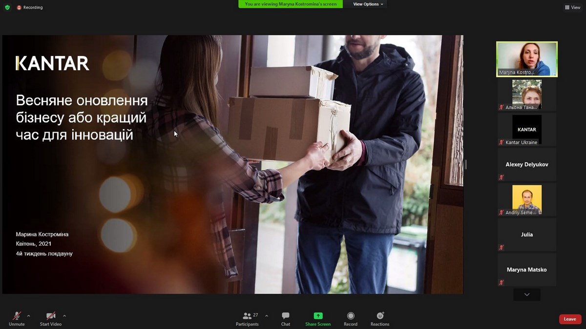 29 квітня 2021 року викладачі ВТЕІ КНТЕУ та здобувачі вищої освіти брали участь у вебінарі «Весняне оновлення бізнесу або кращий час для інновацій» – від провідної у світі дослідницької компанії – «Kantar Україна» та Марини Костроміної, Account Director Kantar Ukraine.