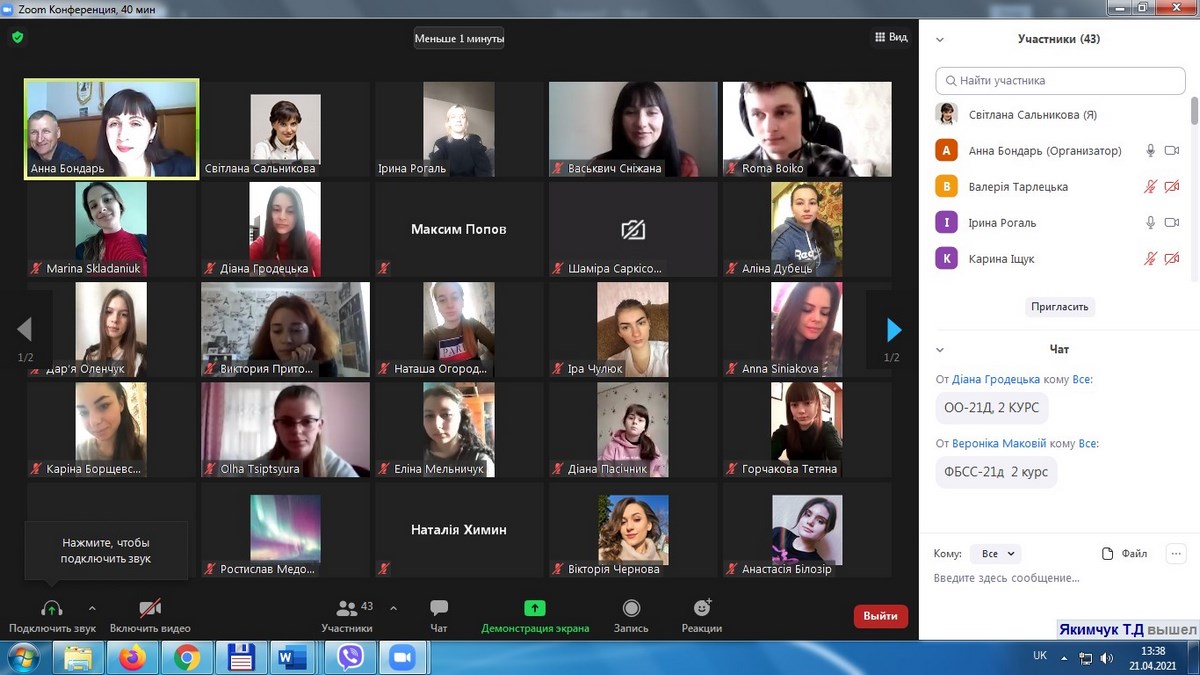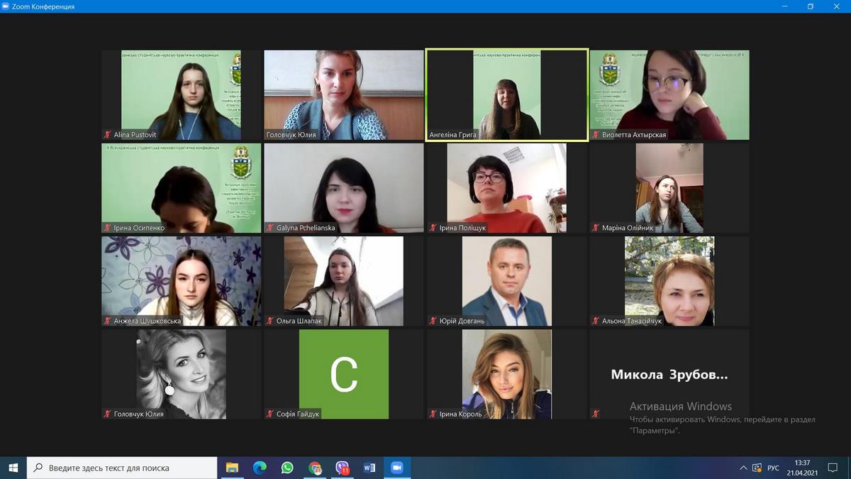 21 квітня 2021 року дистанційно на платформі Zoom було проведено засідання секції №9 «Маркетингові технології в умовах інноваційного розвитку бізнесу» в рамках X Всеукраїнської студентської науково-практичної конференції «Актуальні проблеми ефективного соціально-економічного розвитку України: пошук молодих».