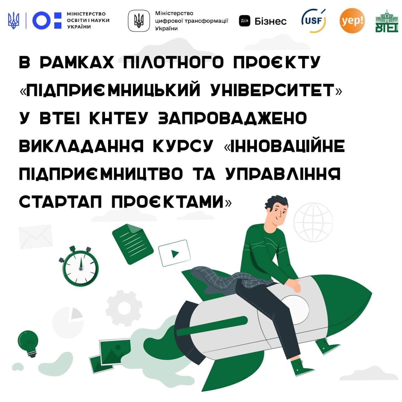 Вінницький торговельно-економічний інститут Київського національного торговельно-економічного університету за підтримки Стартап-інкубатору YEP спільно з Міністерством освіти і науки, Міністерством цифрової трансформації, Дія.Бізнес та Українським фондом стартапів в рамках пілотного проєкту «Підприємницький університет» запровадив викладання курсу «Інноваційне підприємництво та управління стартап проєктами».