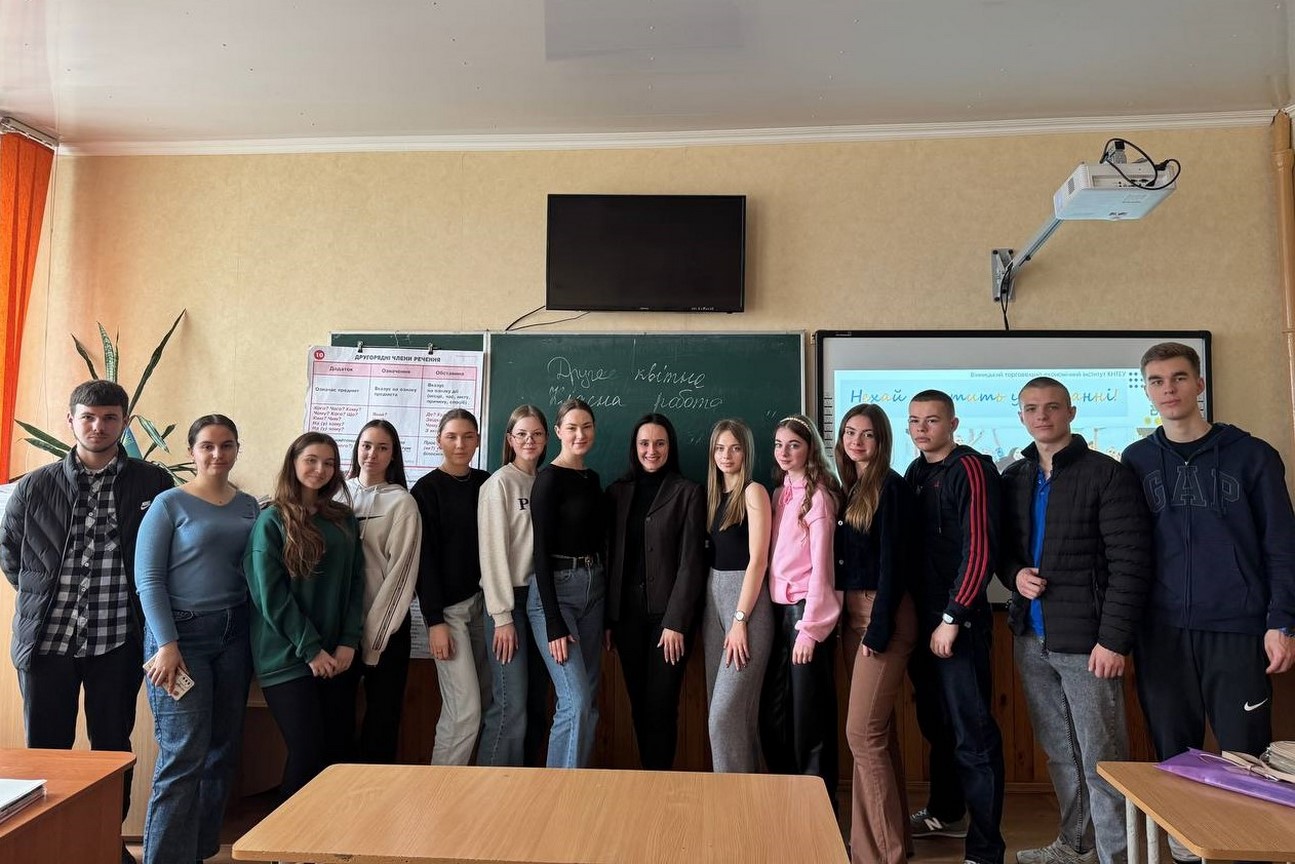 2 квітня 2025 року в межах тижня обліково-фінансового факультету доцент кафедри іноземної філології та перекладу Дарʼя Коровій та студентський актив факультету відвідали КЗ «Ліцей №1 селища Стрижавка Вінницького району Вінницької області», де провели інформаційну сесію «Build your Future with VITE SUTE» для майбутніх абітурієнтів.