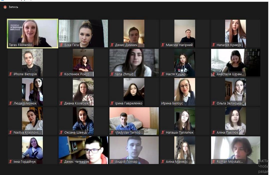 29 травня 2020 року для студентів, які навчаються за спеціальністю 081 «Право», за освітніми ступенями «бакалавр» та «магістр» в режимі ОНЛАЙН була проведена екскурсія в Національному антикорупціному бюро.