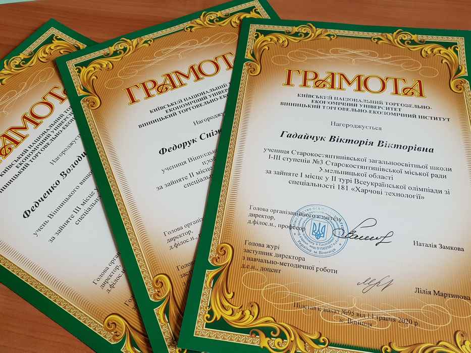 Переможці олімпіади отримали свідоцтва про додаткові бали до оцінки сертифіката ЗНО з математики, скористатися якими матимуть можливість при вступі до Вінницького торговельно-економічного інституту КНТЕУ.