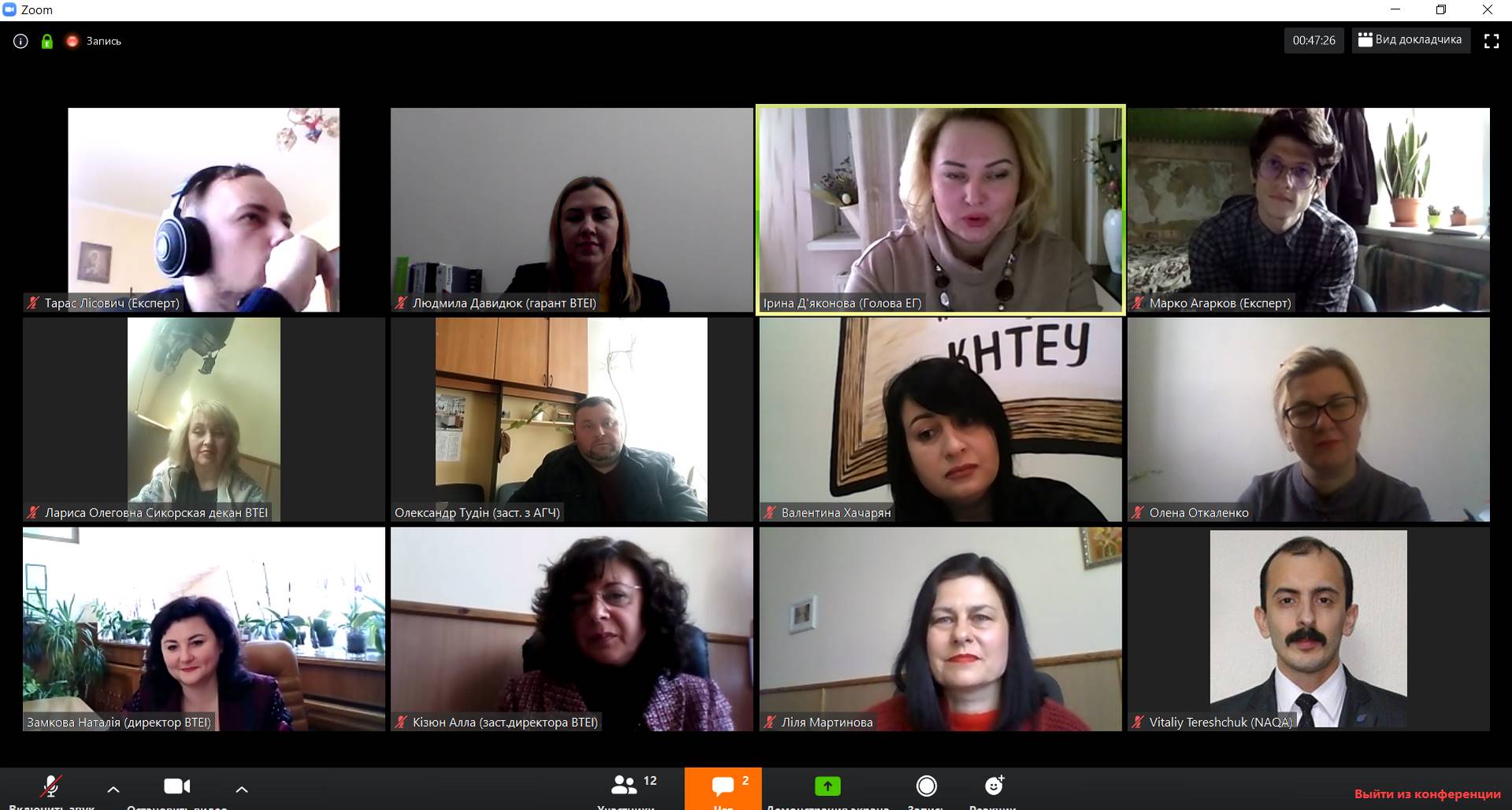 З 16 по 18 квітня 2020 року у Вінницькому торговельно-економічному інституті КНТЕУ відбулась акредитаційна експертиза із використанням технічних засобів відеозв’язку за акредитаційною справою 328/АС-20 освітньої програми першого бакалаврського рівня спеціальності «Міжнародні економічні відносини».