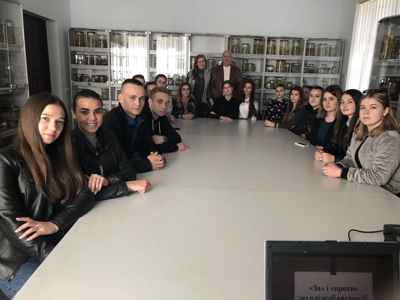 Після завершення обговорення студенти відвідали музей судової медицини, асистент кафедри Валерій Ігорович Гунас ознайомив студентів із основними завданнями та напрямками діяльності судово-медичних експертів.