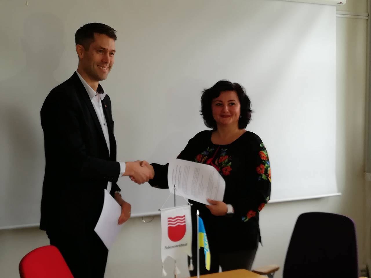 Під час поїздки директором інституту Н.Л. Замковою було підписано договір про співпрацю з ректором Folkuniversetet, Юсефом Ахманом.