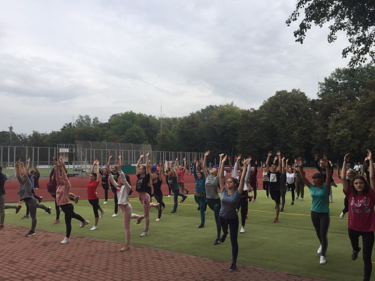 Сьогодні, 6 вересня 2018 року на стадіоні ЦПКіВ м. Вінниці викладачами кафедри фізичного виховання та спорту ВТЕІ КНТЕУ проведено флеш-моб, присвячений Дню фізичної культури і спорту України.