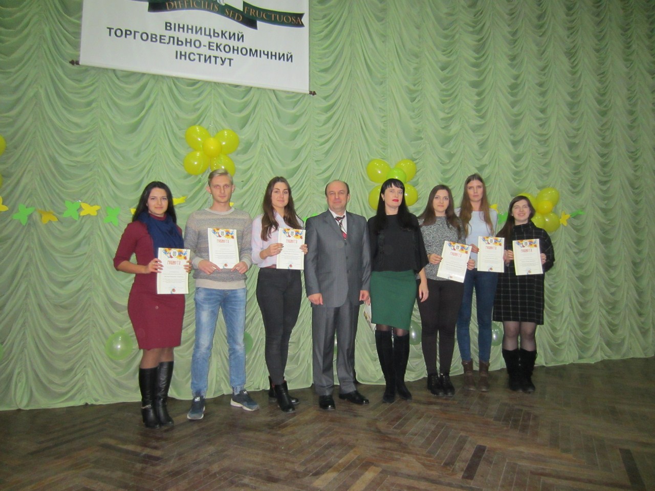 30 жовтня 2017 року в рамках святкування тижня факультету торгівлі, маркетингу та сфери обслуговування відбувся відкритий конкурс «Кращий дегустатор Вінницького торговельно-економічного інституту КНТЕУ». У конкурсі брали участь здобувачі вищої освіти спеціальності «Підприємництво, торгівля та біржова діяльність», спеціалізації «Товарознавство і комерційна логістика» а також команда студентів старших курсів Вінницького торговельно-економічного коледжу КНТЕУ.