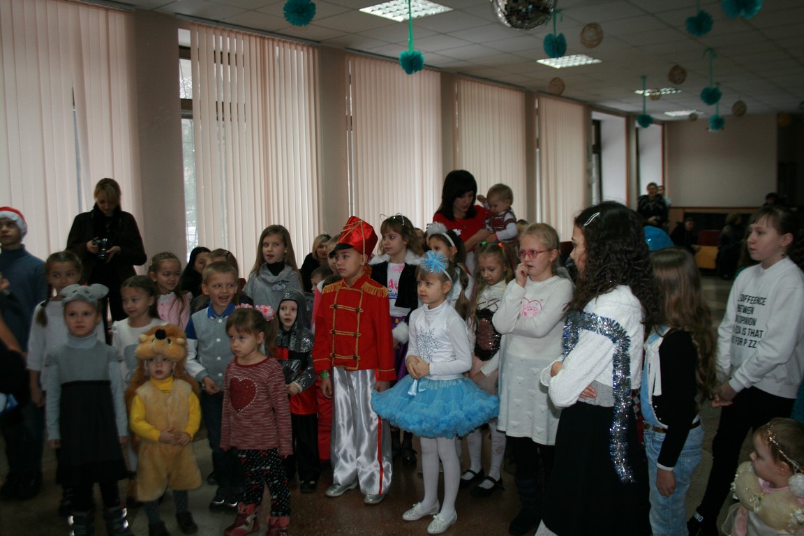 Поява господині дійства Вікторії під гучні фанфари в залі біля ялинки привернула увагу всіх присутніх на святі. На прохання Вікторії, для того, щоб відбулось знайомство, всі гучно та дружно промовили своє ім’я, а потім, відгадуючи загадки, які були перепусткою до справжніх веселощів, перевірилась і кмітливість та веселий настрій діток, що мали допомогти зустріти довгоочікуваних героїв - Діда Мороза та Снігуроньку.
