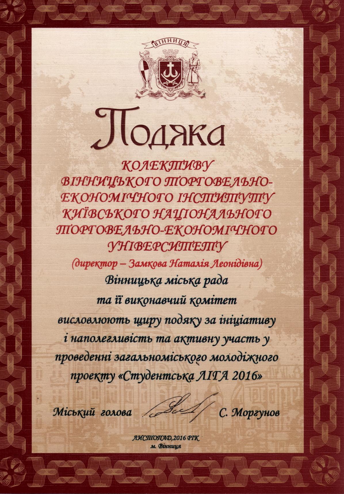16 листопада 2016 року в залі засідань міської ради відбулось нагородження учасників та переможців загальностудентського проекту «Студентська Ліга 2016».
