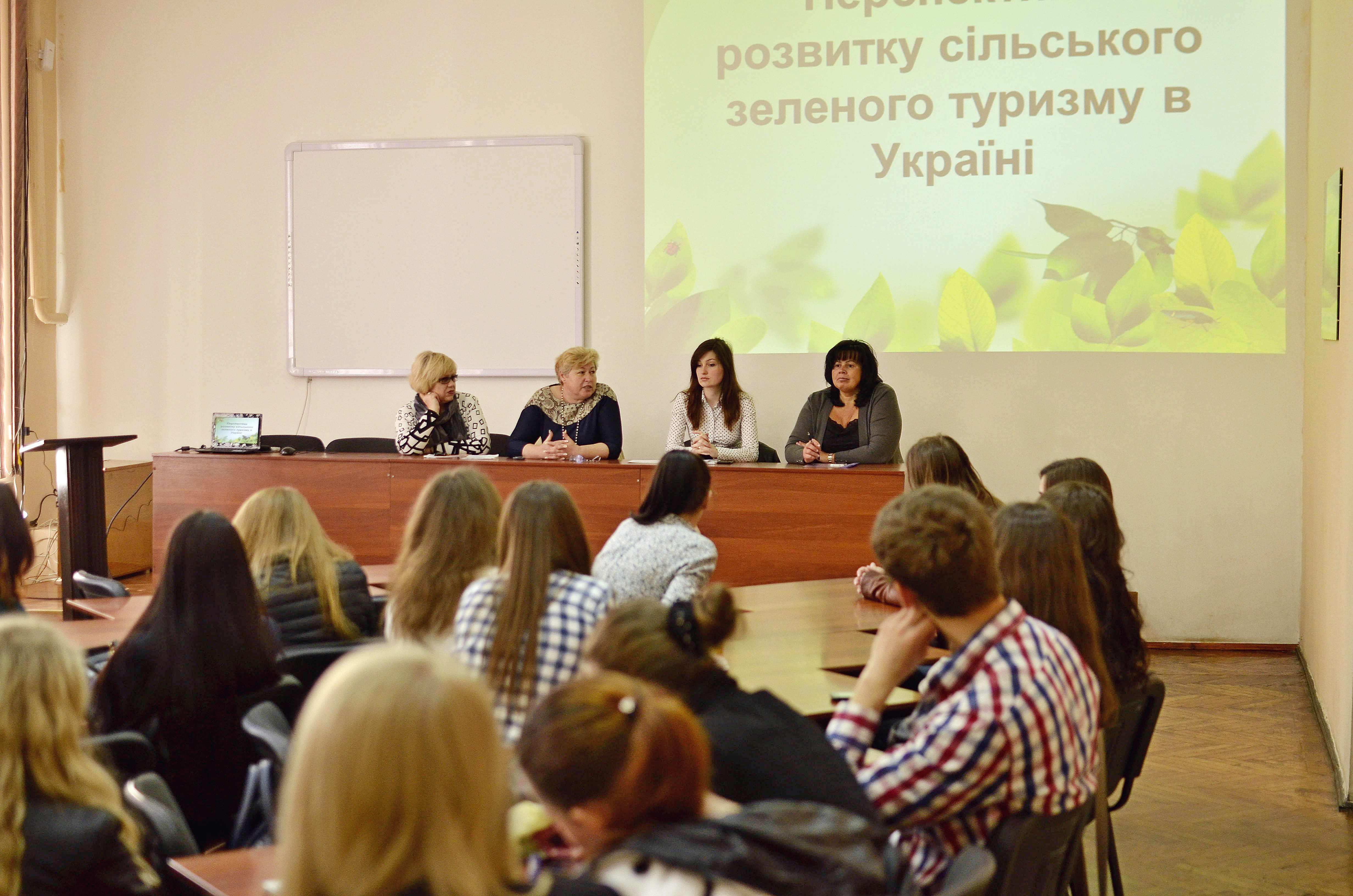 08 травня 2015р. відбувся круглий стіл на тему: «Реалії та перспективи розвитку сільського туризму в Україні». Учасниками даного заходу були: директор туристичної агенції «Галопом по Європах» Олещук Ганна, директор приватного підприємства «Укрвінінтур» Гандурська Ольга Ігорівна, спеціаліст Управління культури і туризму ВОДА Линник Леся Сергіївна, здобувачі освітнього ступеня «бакалавр» та «магістр», а також викладачі кафедри туризму та готельно-ресторанної справи. Під час проведення круглого столу обговорювалися актуальні проблеми та можливі перспективи розвитку сільського зеленого туризму у Вінницькій області та в Україні в цілому.