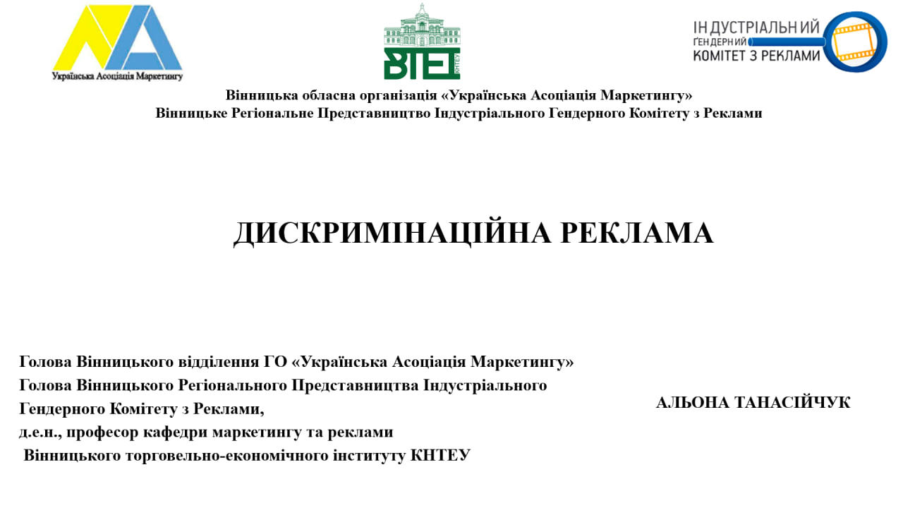 13 листопада 2024 року для учнів 10-В класу КЗ «Вінницький ліцей №4» у рамках вивчення предмету «Соціальне шкільне підприємництво» було проведено майстер-клас «Дискримінаційна реклама». Захід провела професорка Танасійчук Альона.