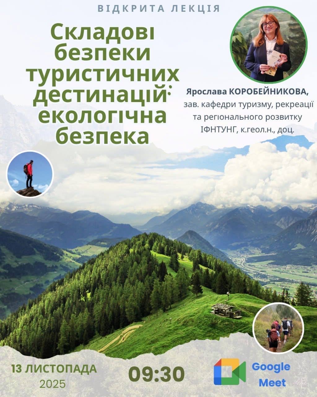 13 листопада 2025 року науково-педагогічні працівники кафедри «Туризму та готельно-ресторанної справи» та здобувачі вищої освіти спеціальності «Туризм і рекреація» відвідали онлайн-лекцію «Безпека туристичної діяльності!» у рамках вивчення освітнього компоненту «Безпека туризму».